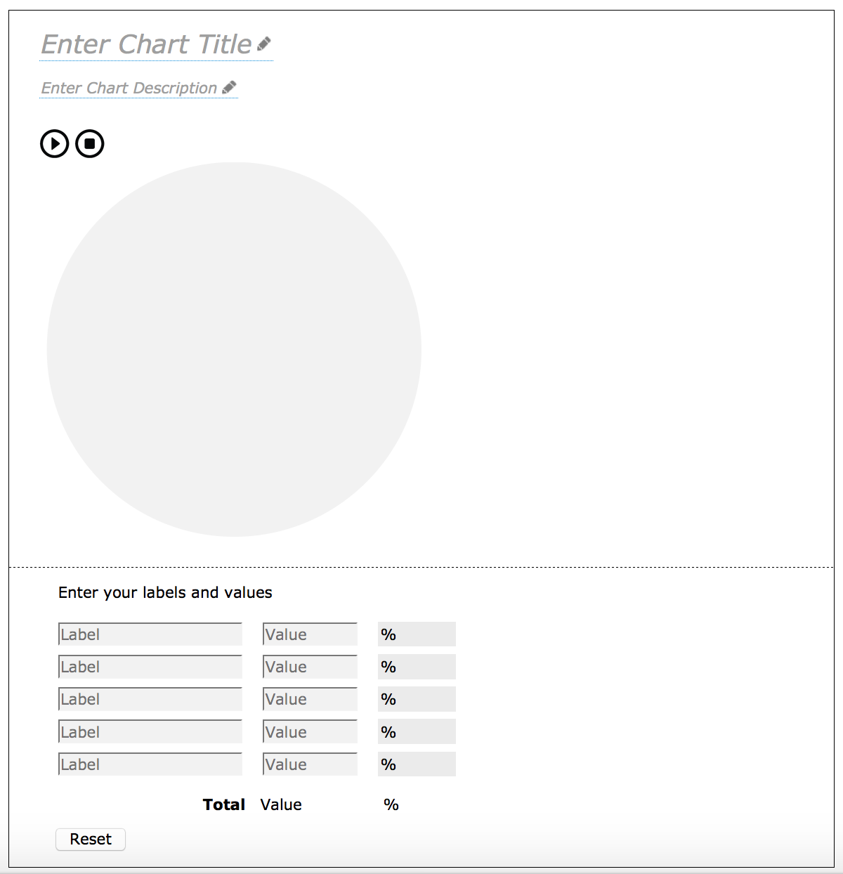 As shown in figure 10, selecting the reset button will erase all the information including the chart title and description as well as the data entered in the table.